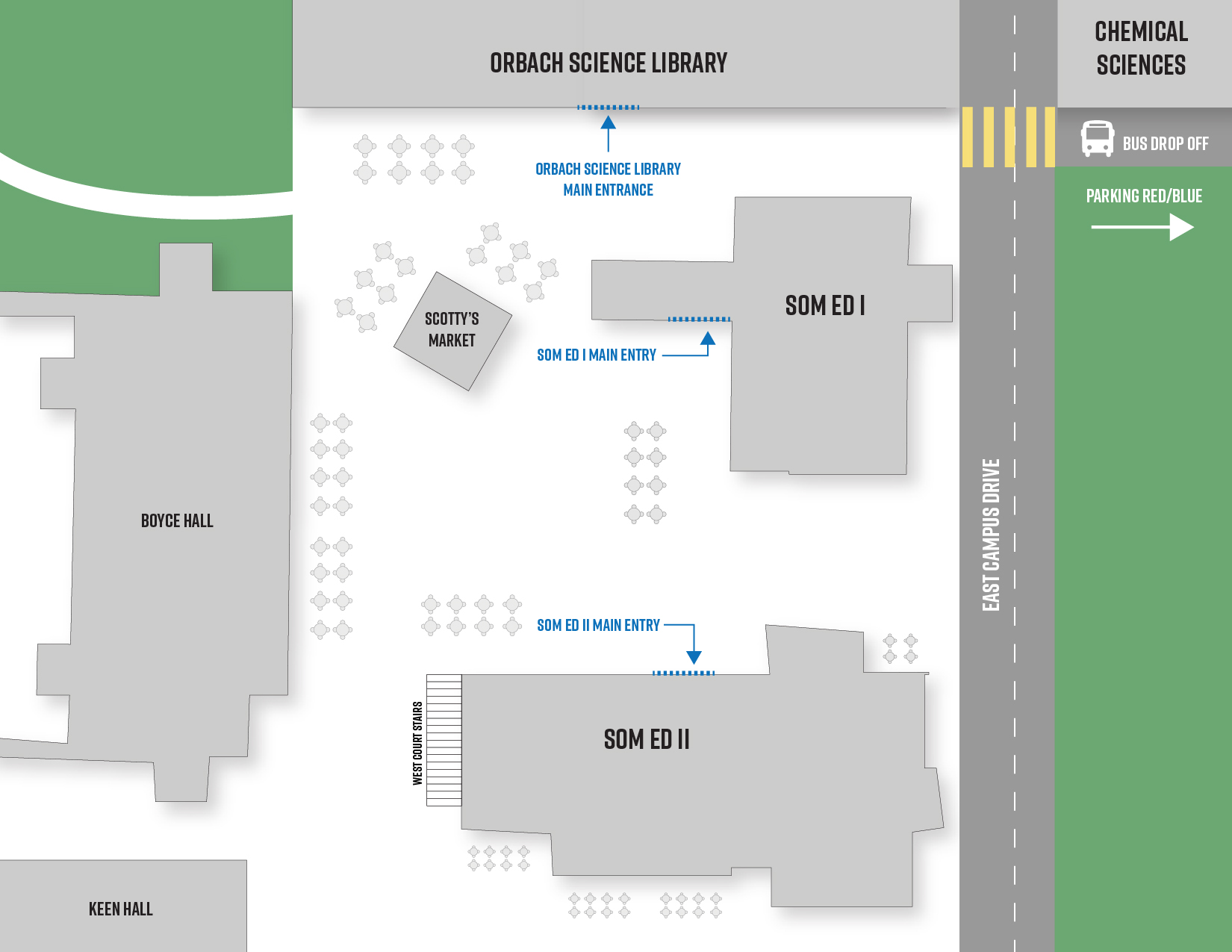 | ED II Building | Ed I Building | Center for Simuated Patient Care (Orbach Library) | ||||||||